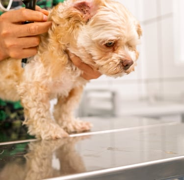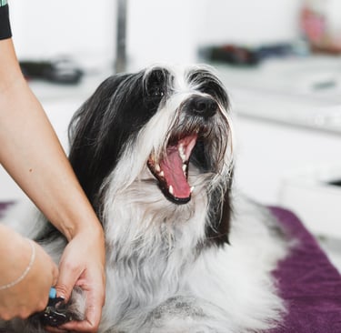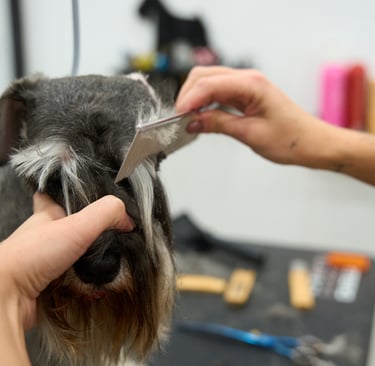 Cut, bath, brushing, paws, ears, and nails. Adapted to the dog’s emotional needs.Write a short description of this category