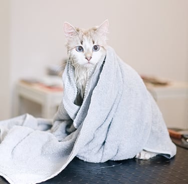 Cat Groom (brush, nail trim, ear cleaning, feet trim & bath)